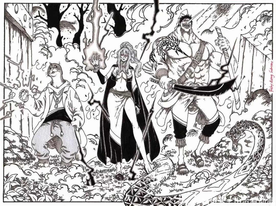 圣地玛丽乔亚陷入大火当中,夏姆克斯已经回到圣地玛丽乔亚,他马上带着神之骑士团出击迎战革命军,还有CP0等人,他们都是保护圣地玛丽乔亚的战力。神之骑士团出现了三位新成员,他们全是能力者,动物系恶魔果实能力者。