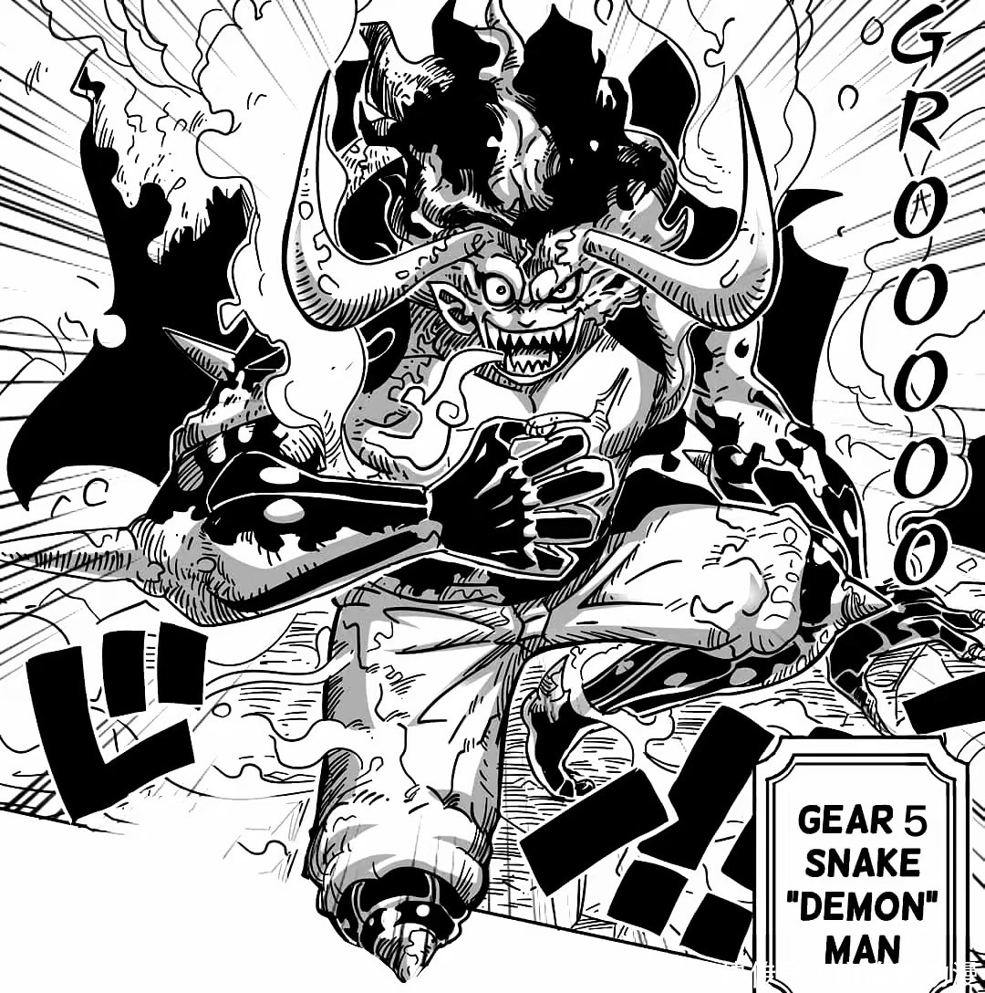 恶魔傀儡正在攻打村庄,路飞和海尔丁等人马上出战,其他人也纷纷加入战斗的行列。路飞开启了尼卡形态战斗,他一拳就击飞了恶魔傀儡,伊姆大人也发现了草帽小子,她马上出手对战尼卡路飞,还指挥恶魔傀儡围攻路飞,路飞不敌众人,他只能觉醒五档恶魔形态了。