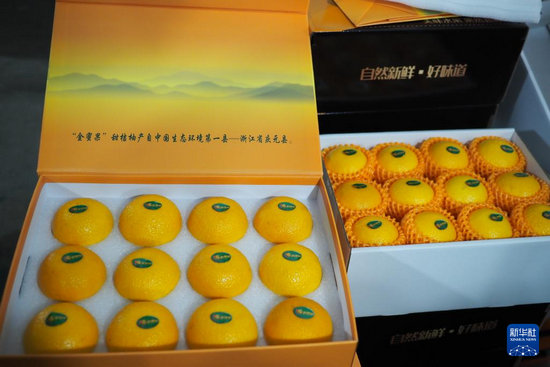 这是12月11日在浙江省庆元县竹口镇黄坛水干果园区内拍摄的分装好的甜桔柚礼盒证星策略。